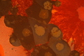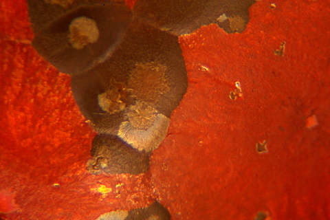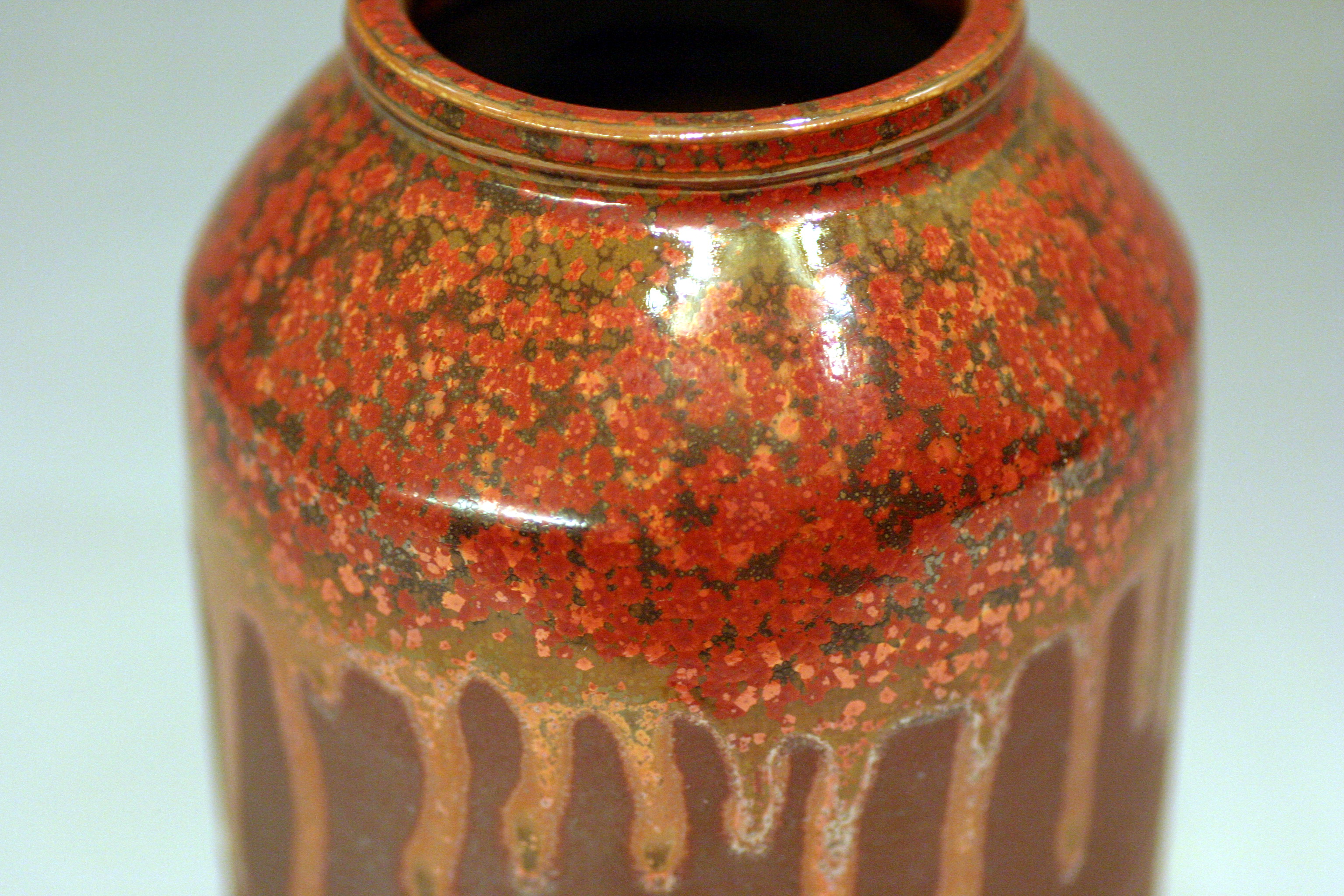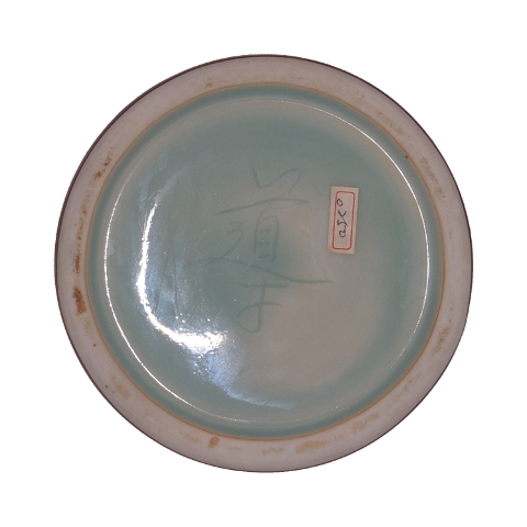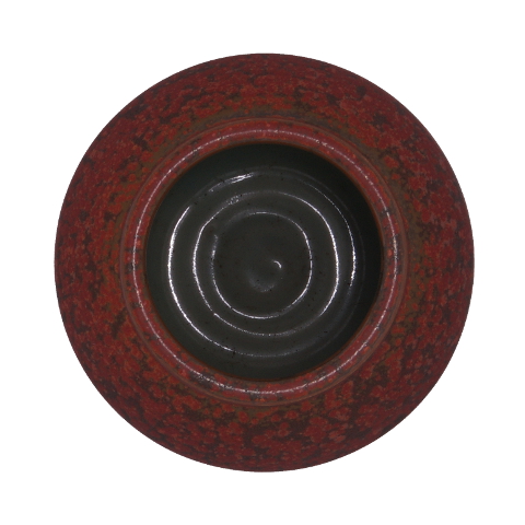釉色:鐵紅結晶釉 ‧ 瓶底留有作者刻字簽名(導)及標籤(紅邊0250),螢光色簽字(114)(CY)