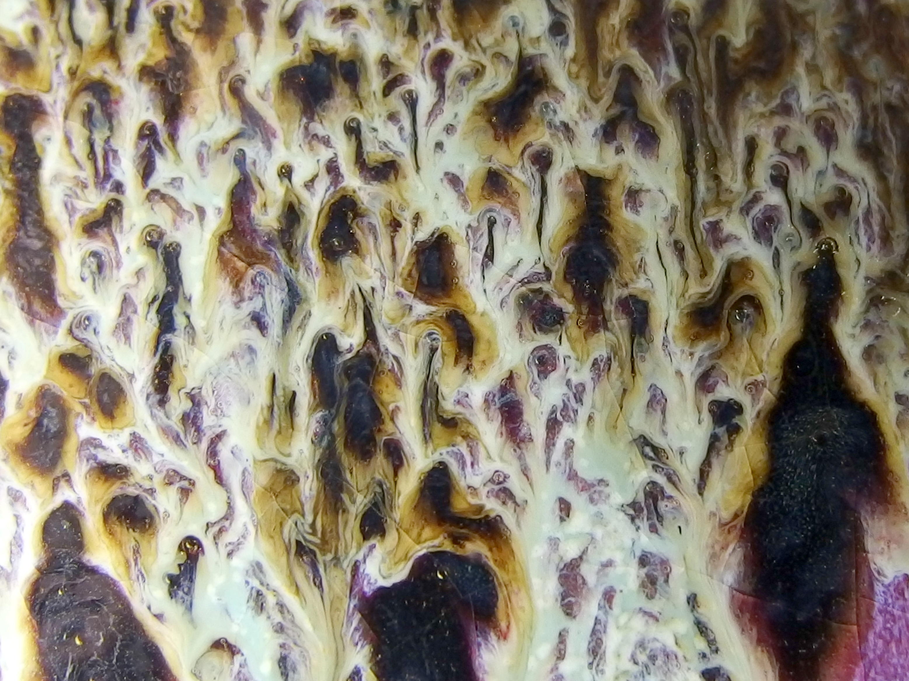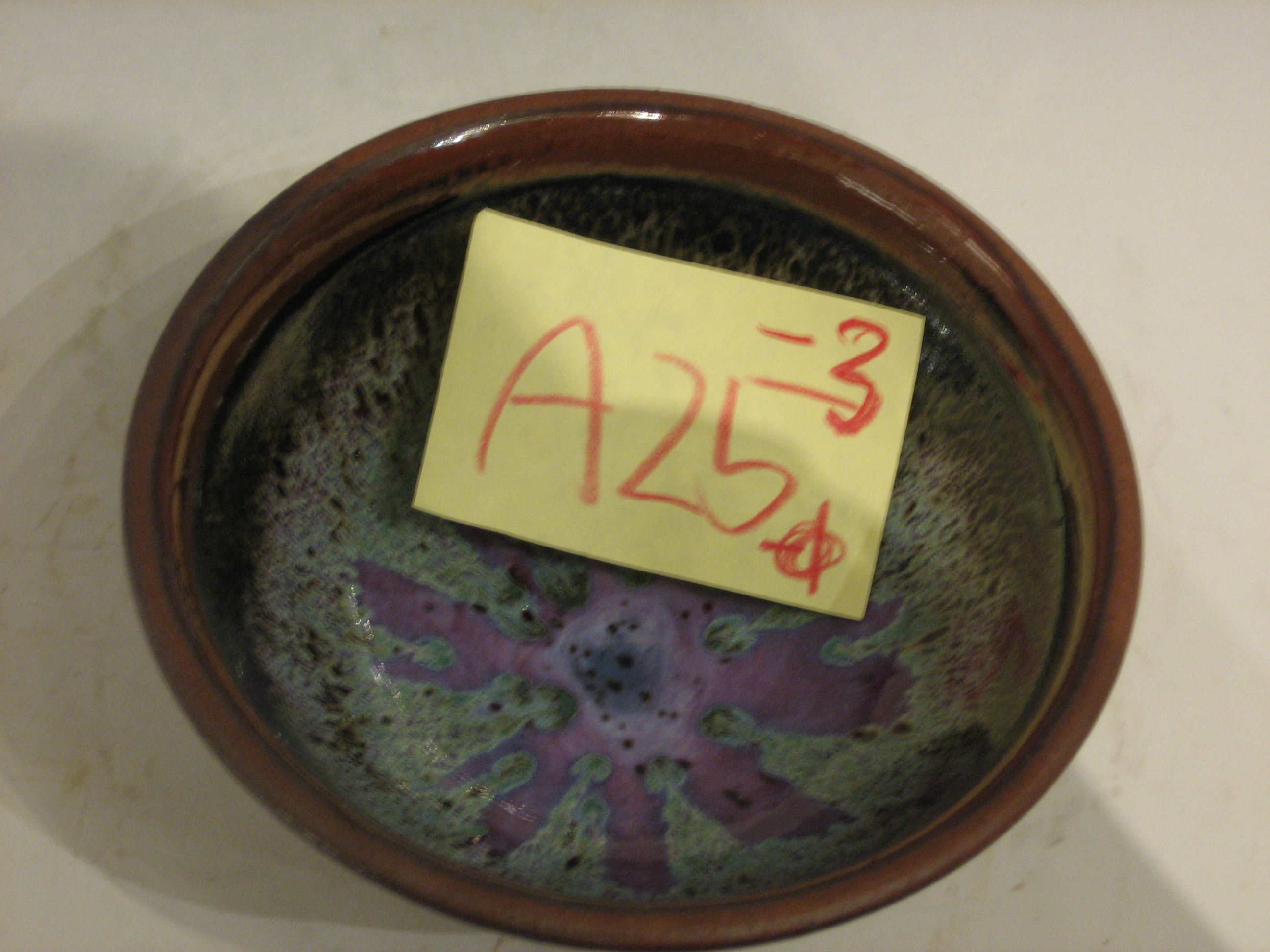 釉色:窯變天目釉 ‧ 1.碗底留有作者刻字簽名及年份(導,95) 2.碗底貼有兩張標籤(B)(紅??,其餘污損無法辨識) (CY)