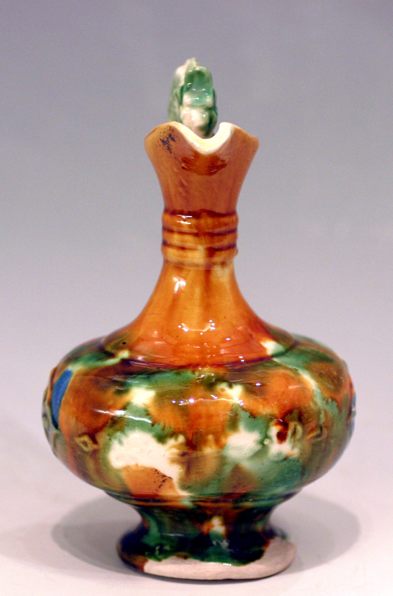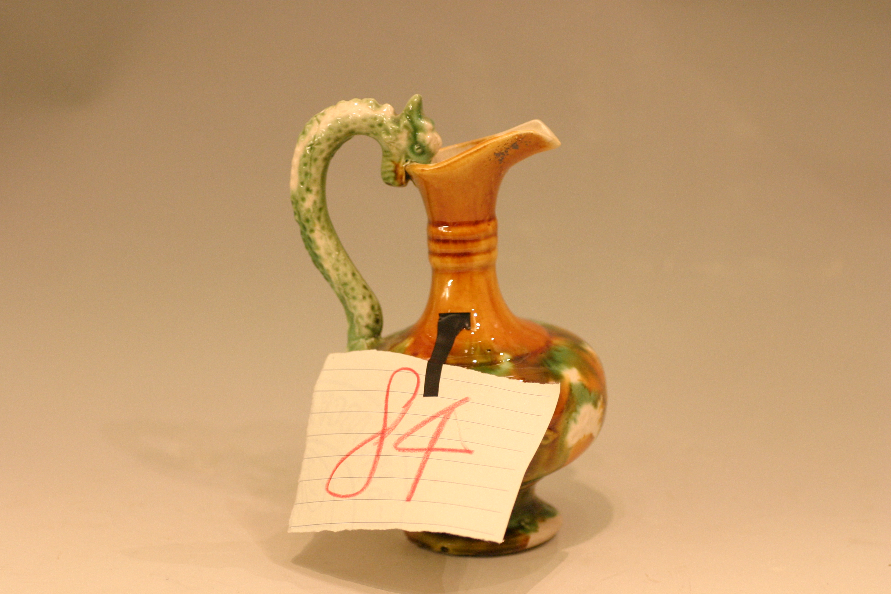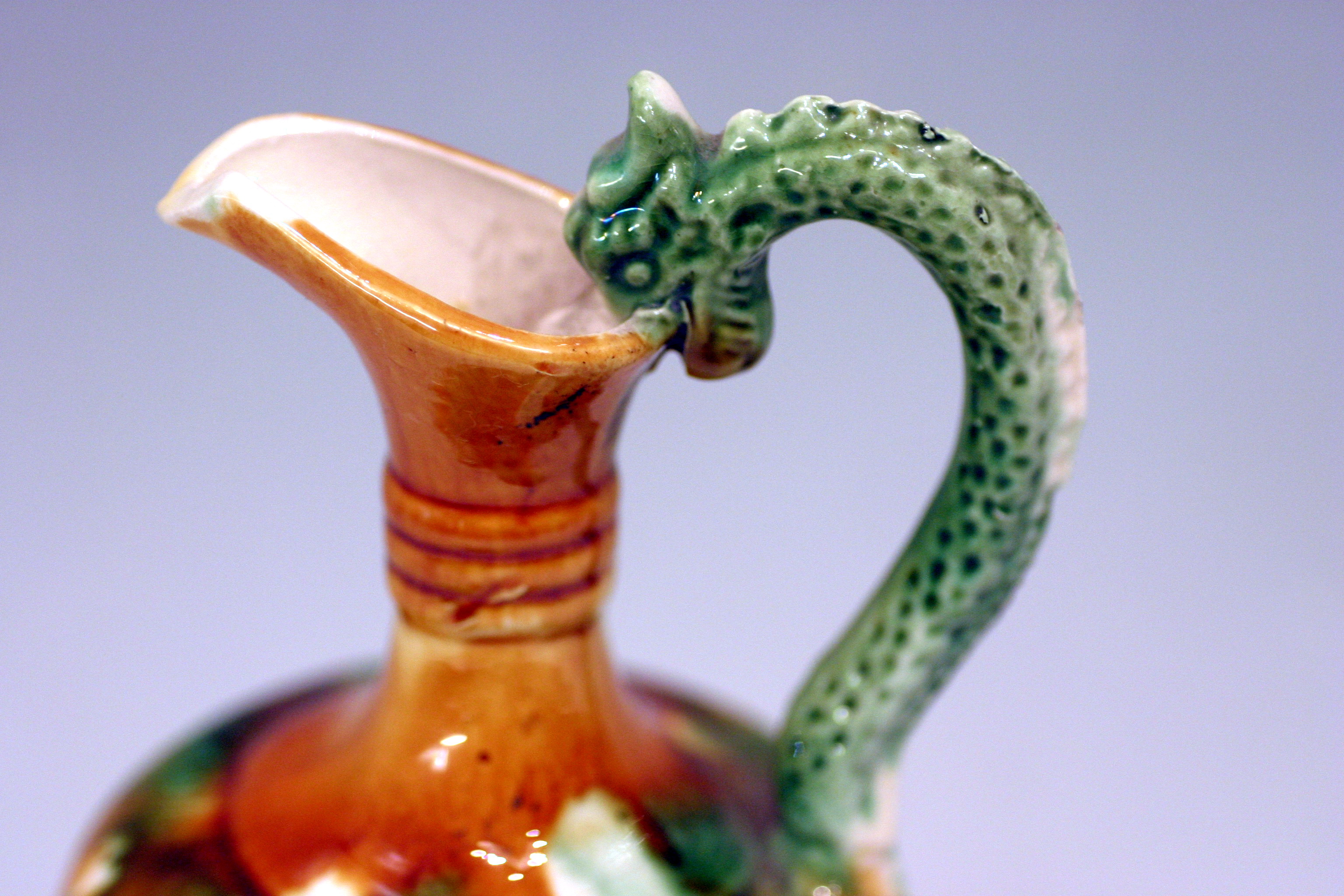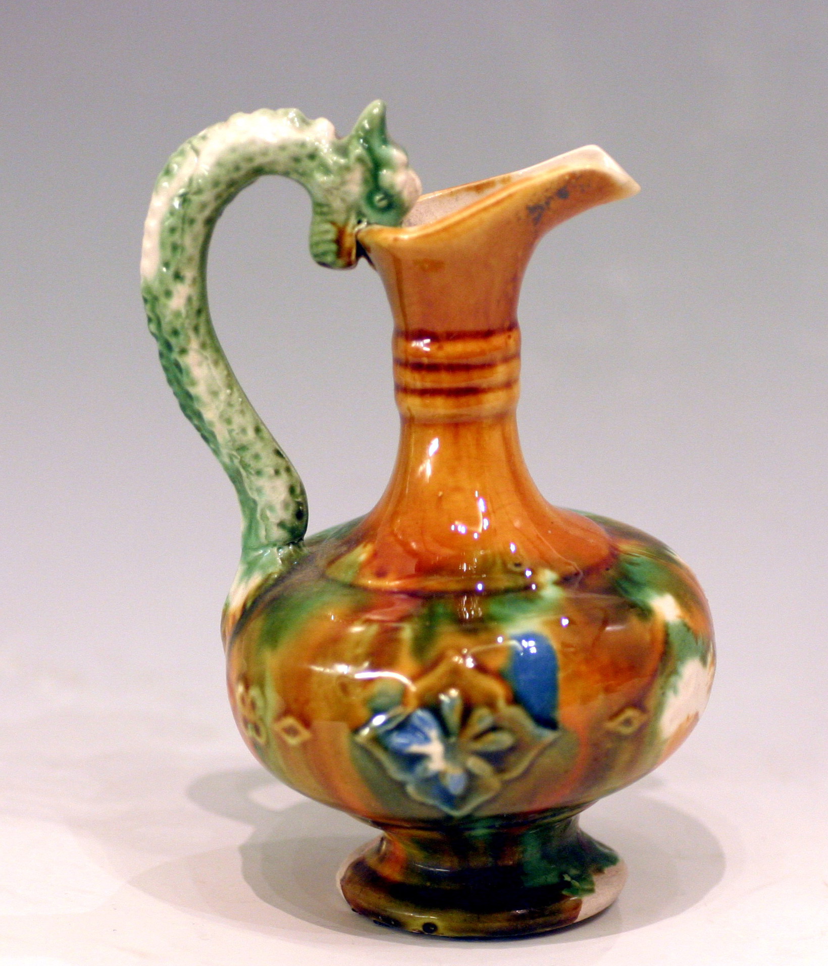 仿三彩釉龍形把水注瓶