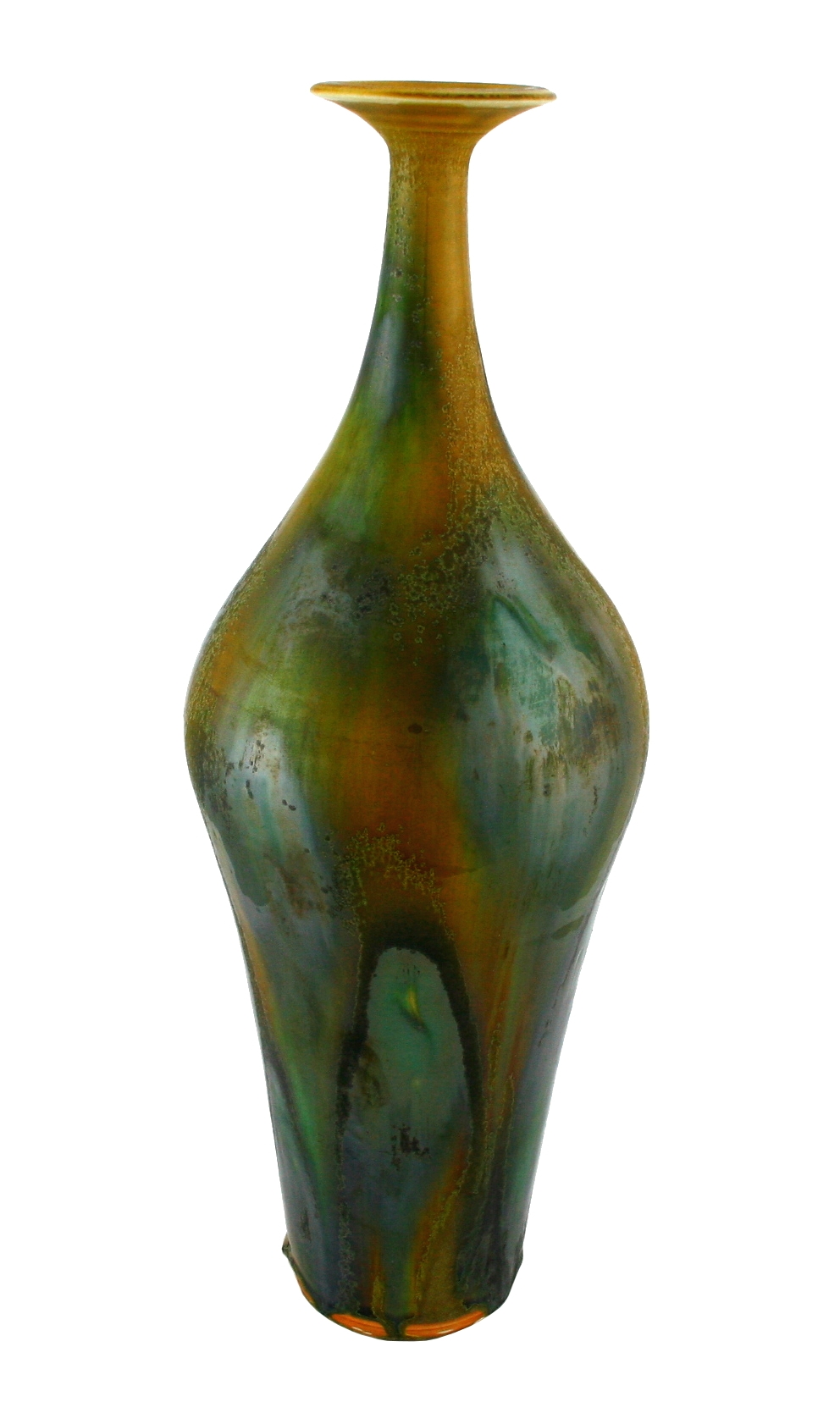 綠釉底淋深黃釉撇口長頸鼓肩瓶
