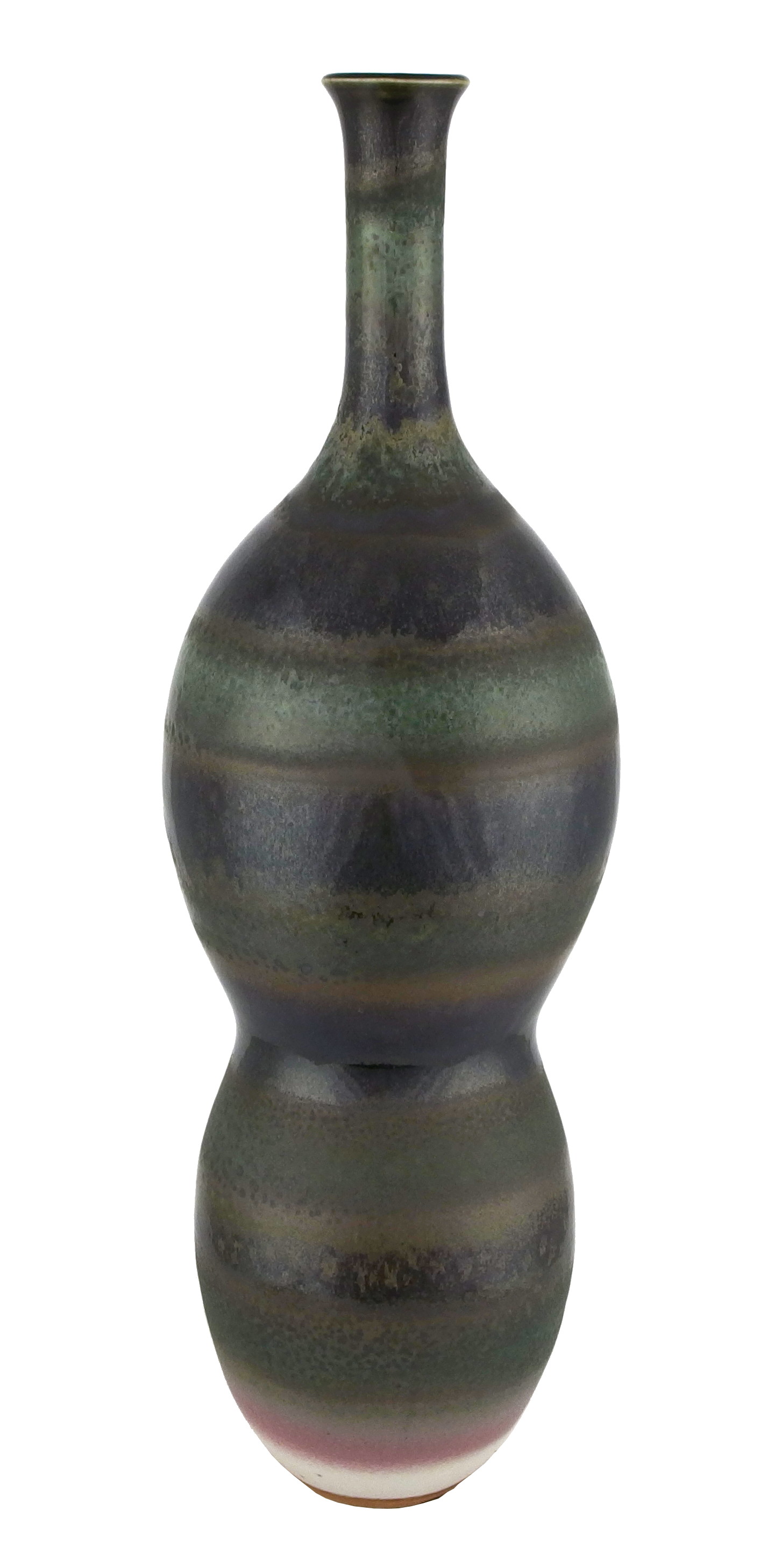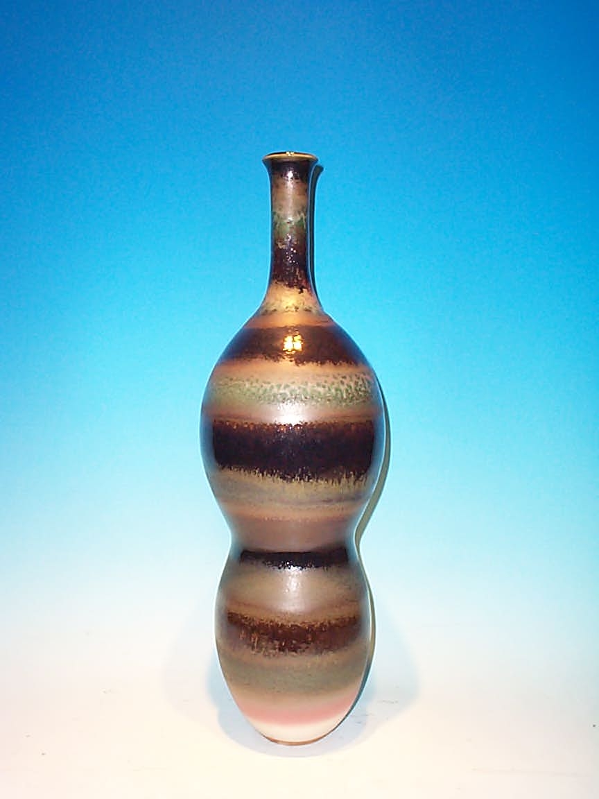 多彩釉橫紋長頸葫蘆型瓶