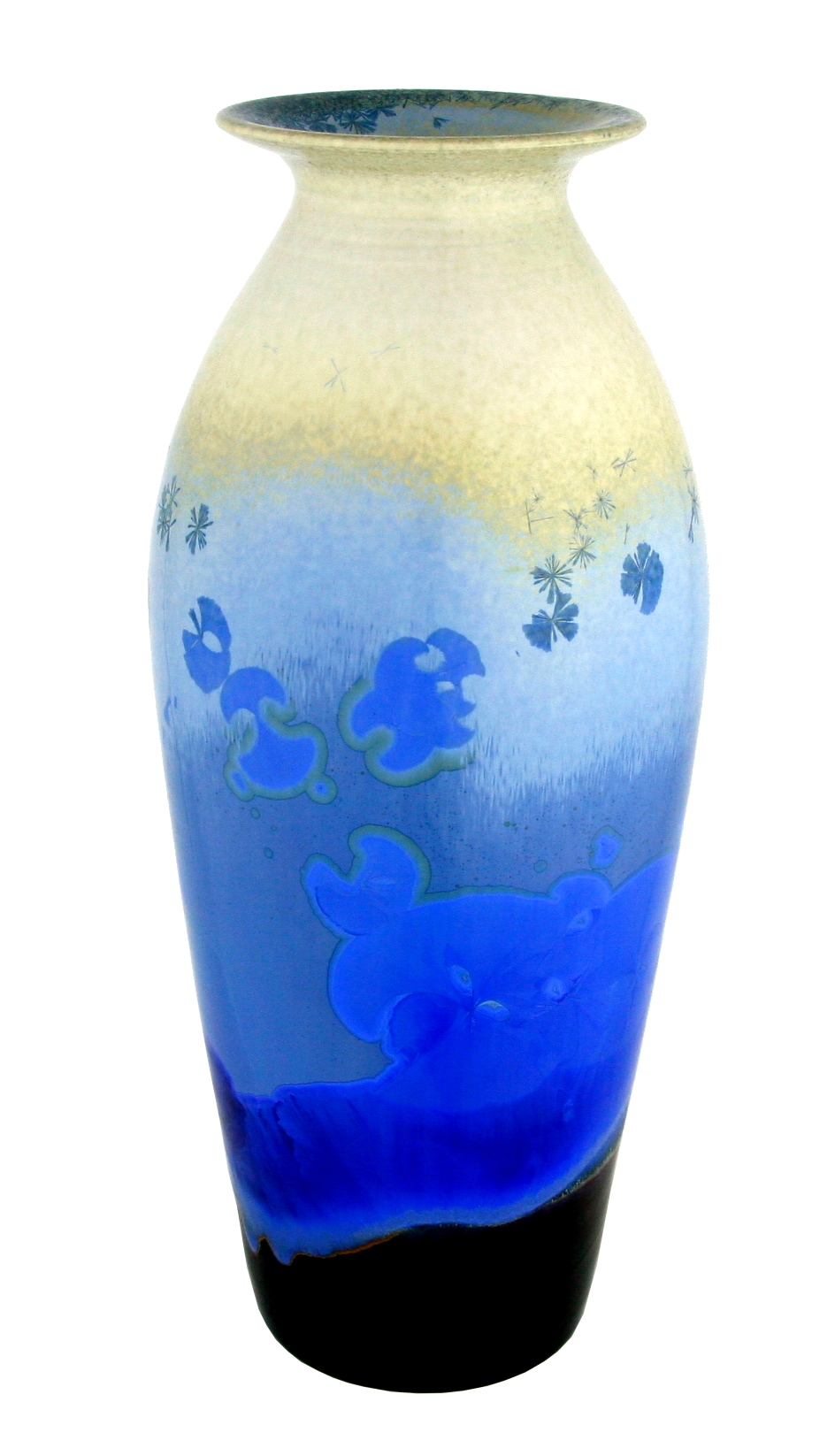 結晶釉撇口束頸瓶(白、藍、褐)